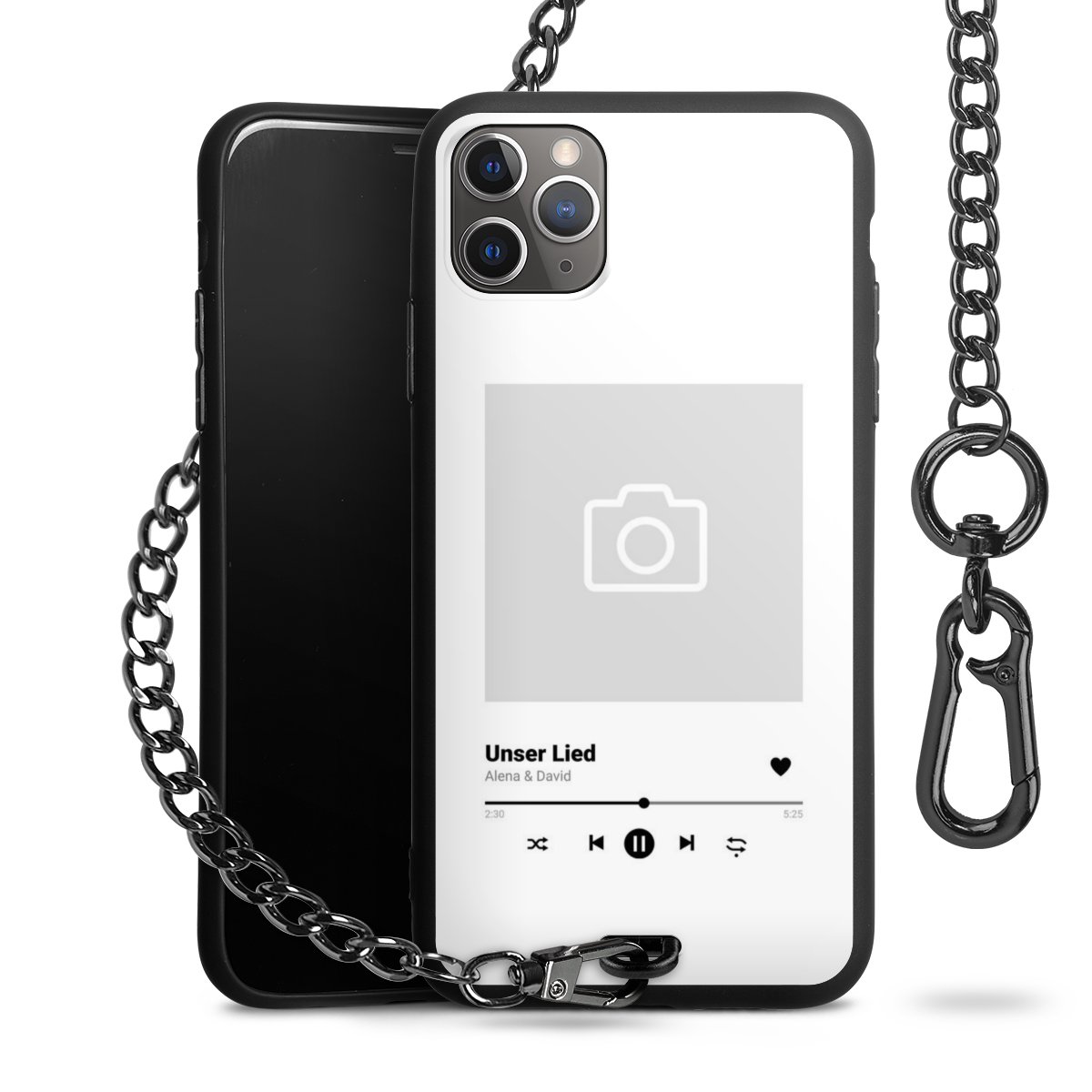 - Mattschwarze Handyhülle mit Metallkette