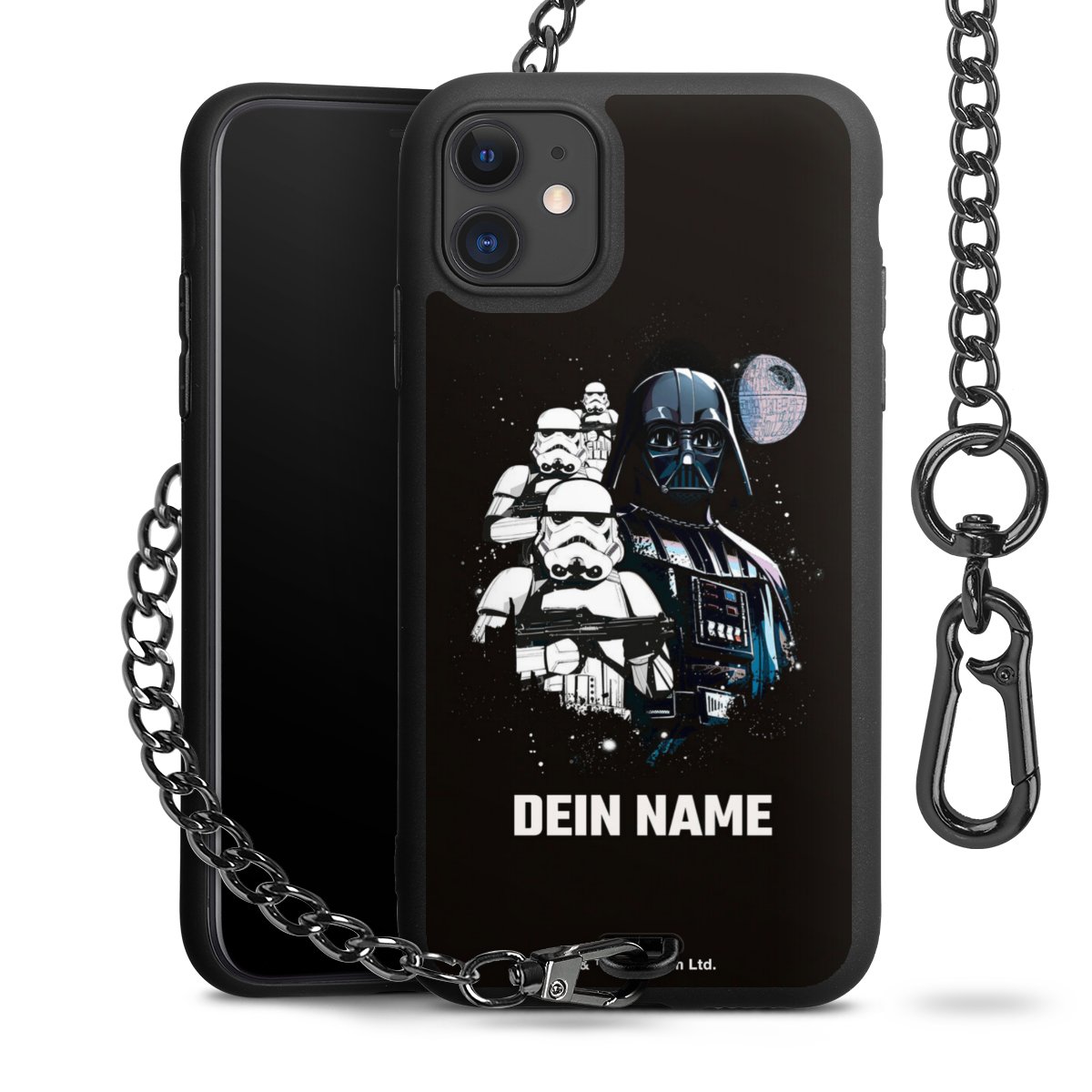 - Mattschwarze Handyhülle mit Metallkette
