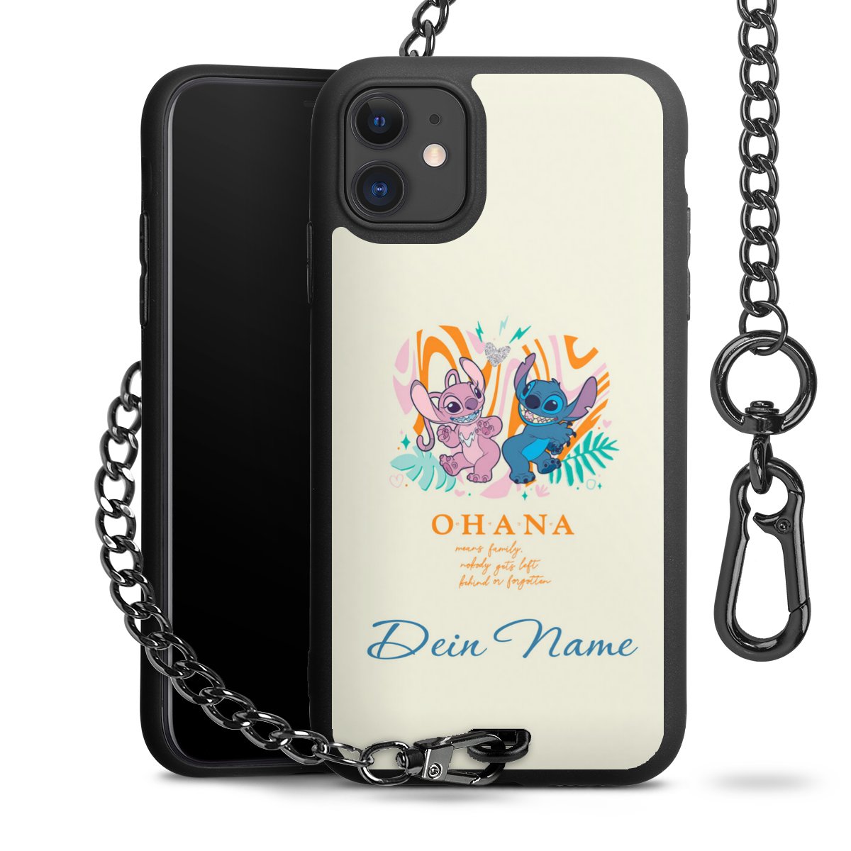 - Mattschwarze Handyhülle mit Metallkette