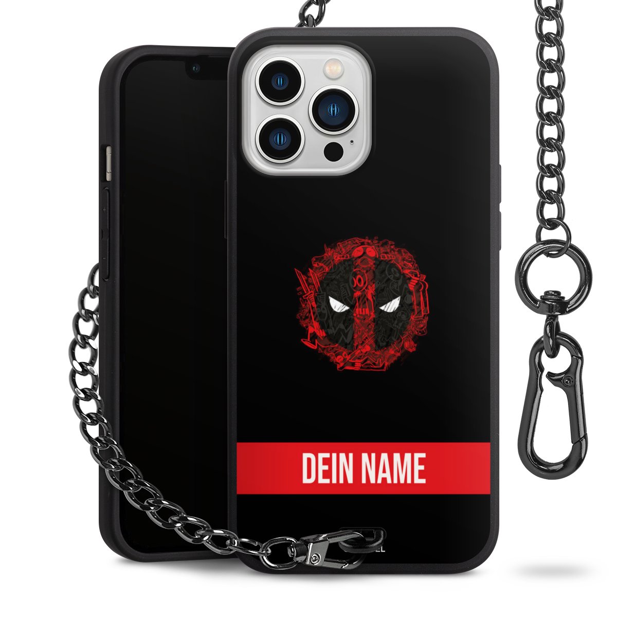 - Mattschwarze Handyhülle mit Metallkette