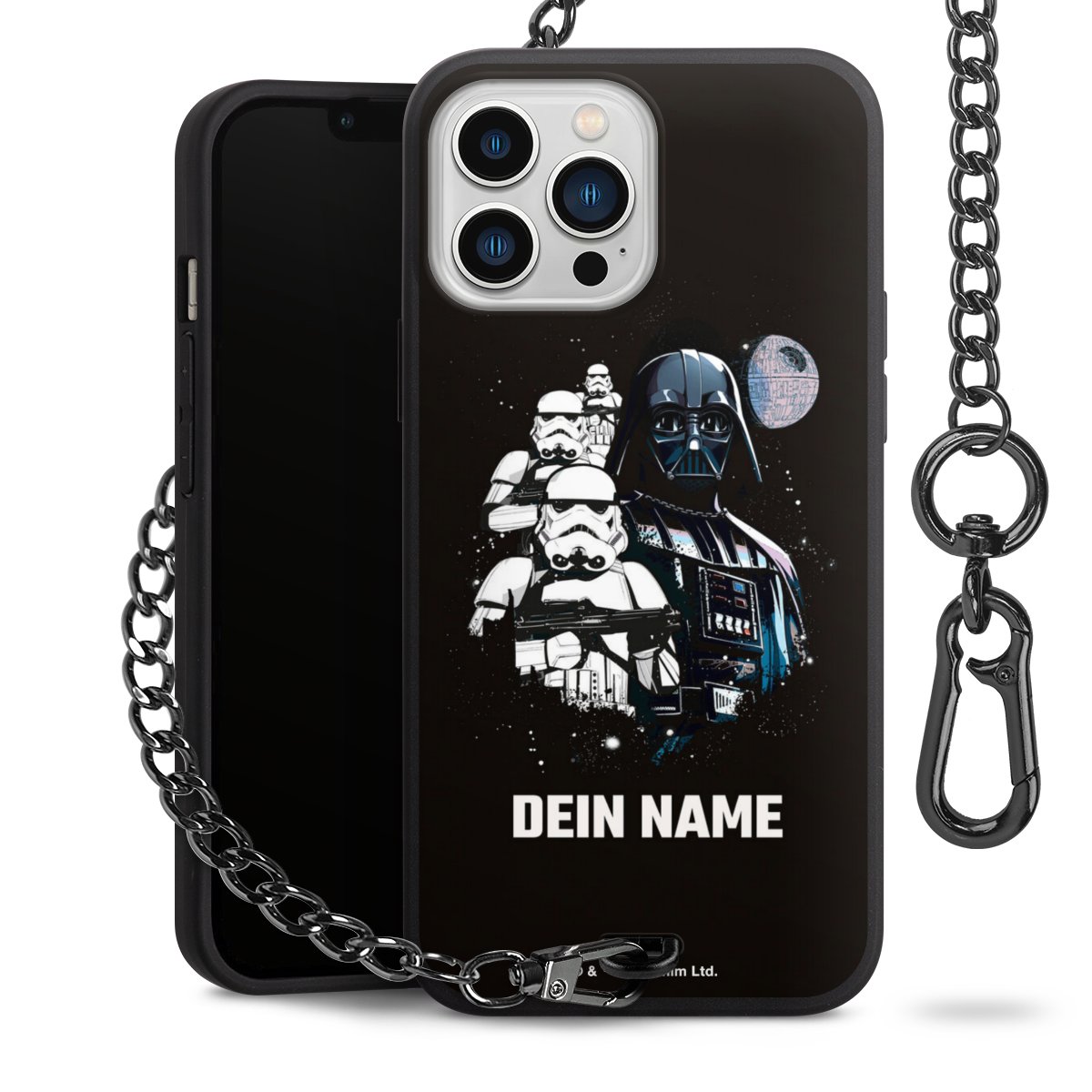 - Mattschwarze Handyhülle mit Metallkette