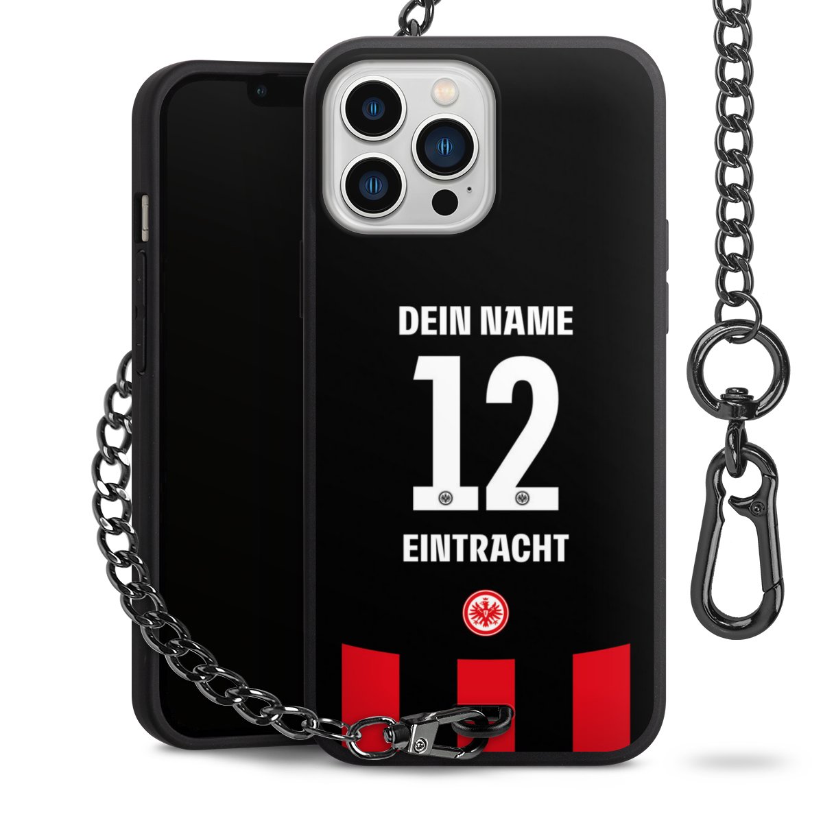 - Mattschwarze Handyhülle mit Metallkette