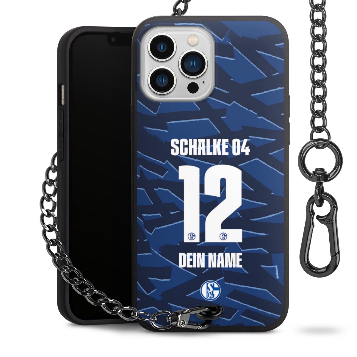 - Mattschwarze Handyhülle mit Metallkette