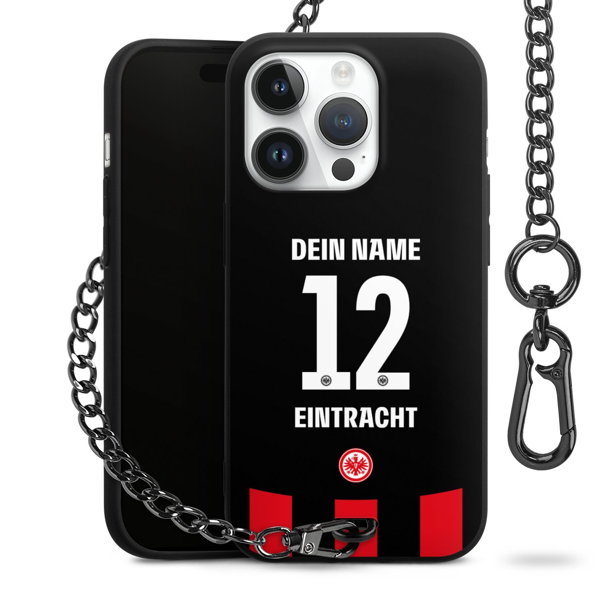 - Mattschwarze Handyhülle mit Metallkette