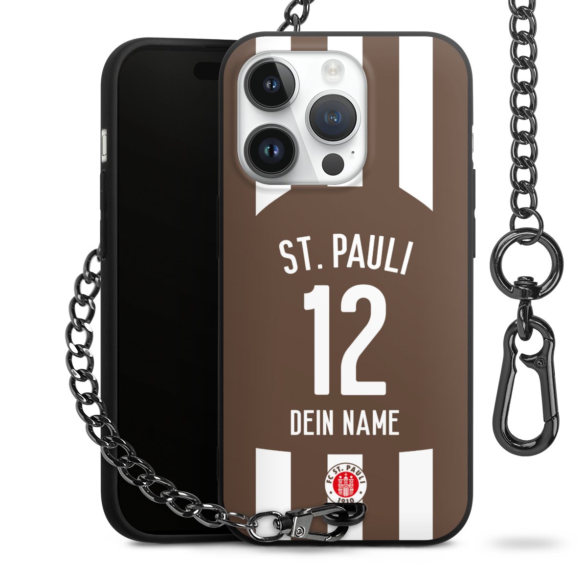 - Mattschwarze Handyhülle mit Metallkette