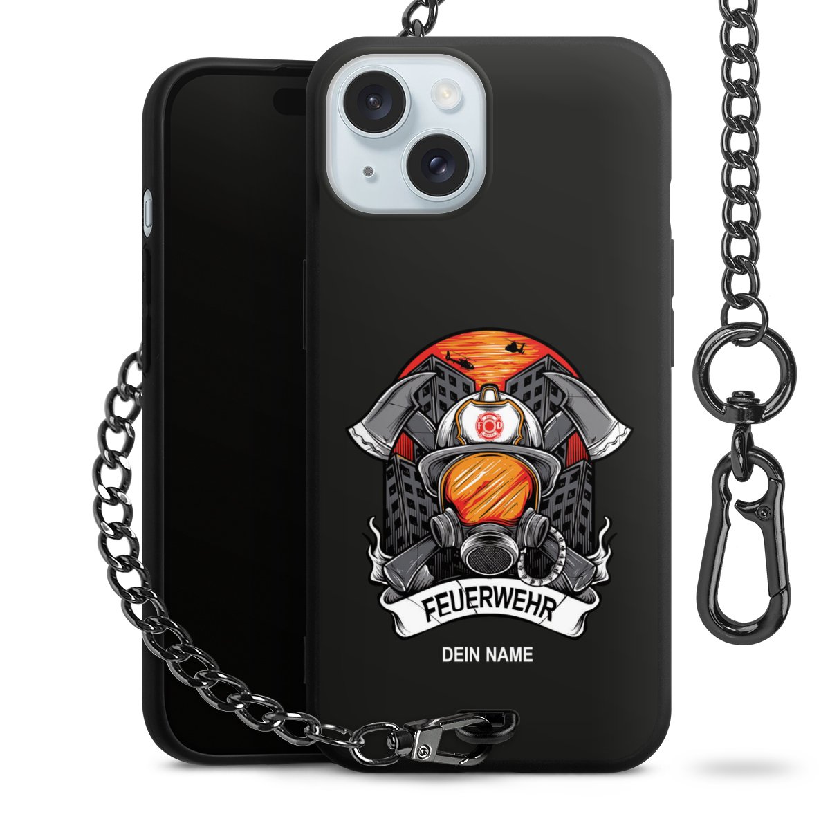 - Mattschwarze Handyhülle mit Metallkette