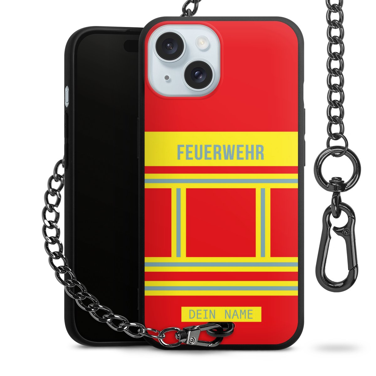 - Mattschwarze Handyhülle mit Metallkette
