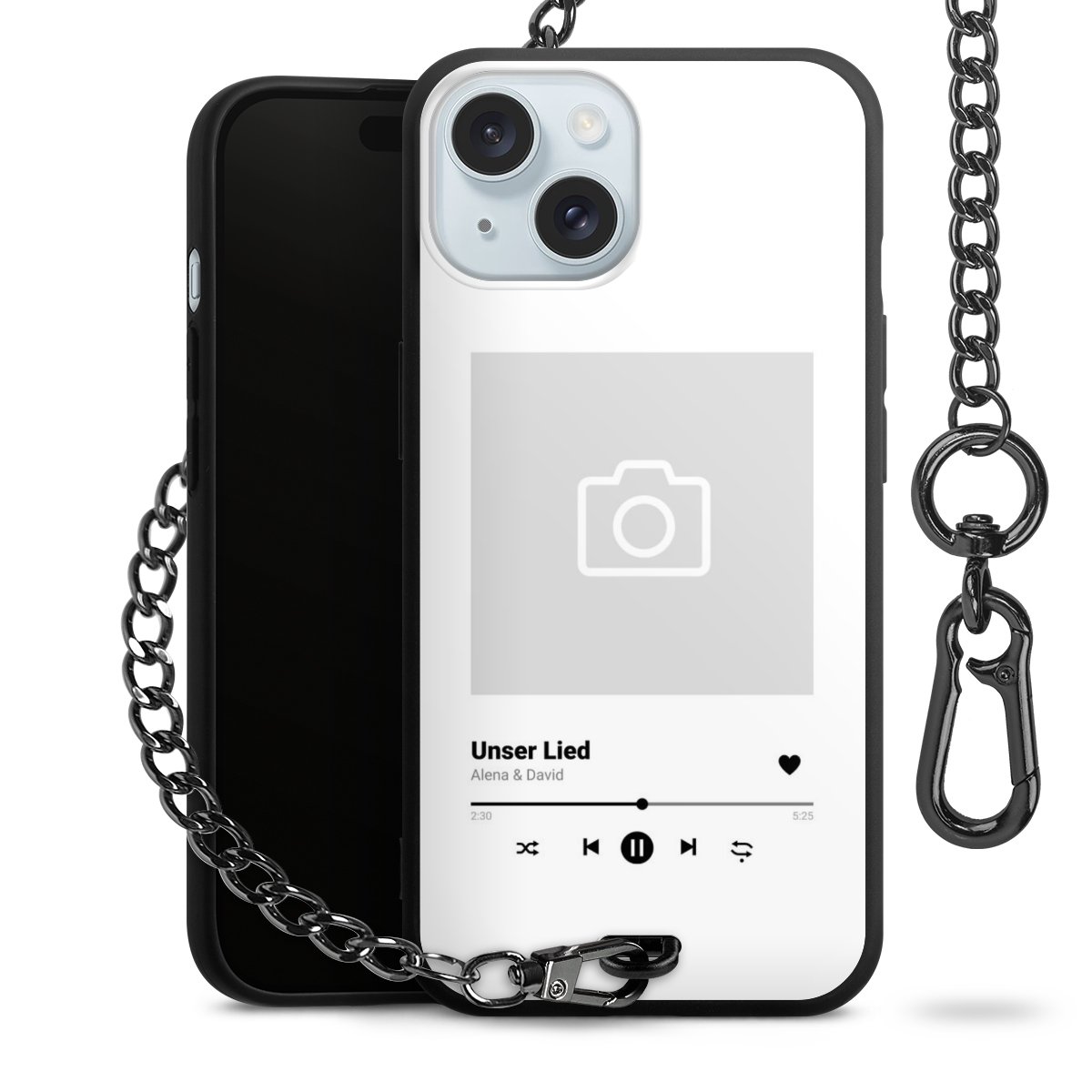 Die mattschwarze Silikon-Handyhülle besteht aus robustem TPU (thermoplastisches Polyurethan). Sie ist flexibel und schützt Dein Smartphone vor Stößen und Kratzern. Die Kette sowie der Karabinerhaken sind aus Metall in Gunmetal-Optik gefertigt. Für dieses Produkt kommen ausschließlich TÜV-geprüfte Materialien zum Einsatz.