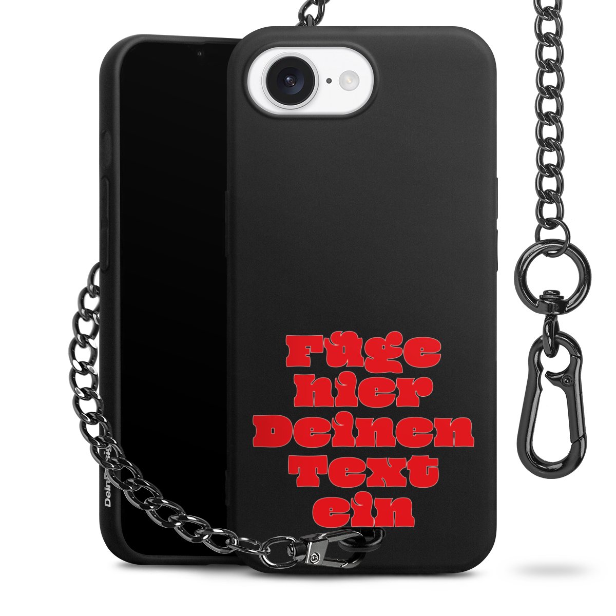 - Mattschwarze Handyhülle mit Metallkette