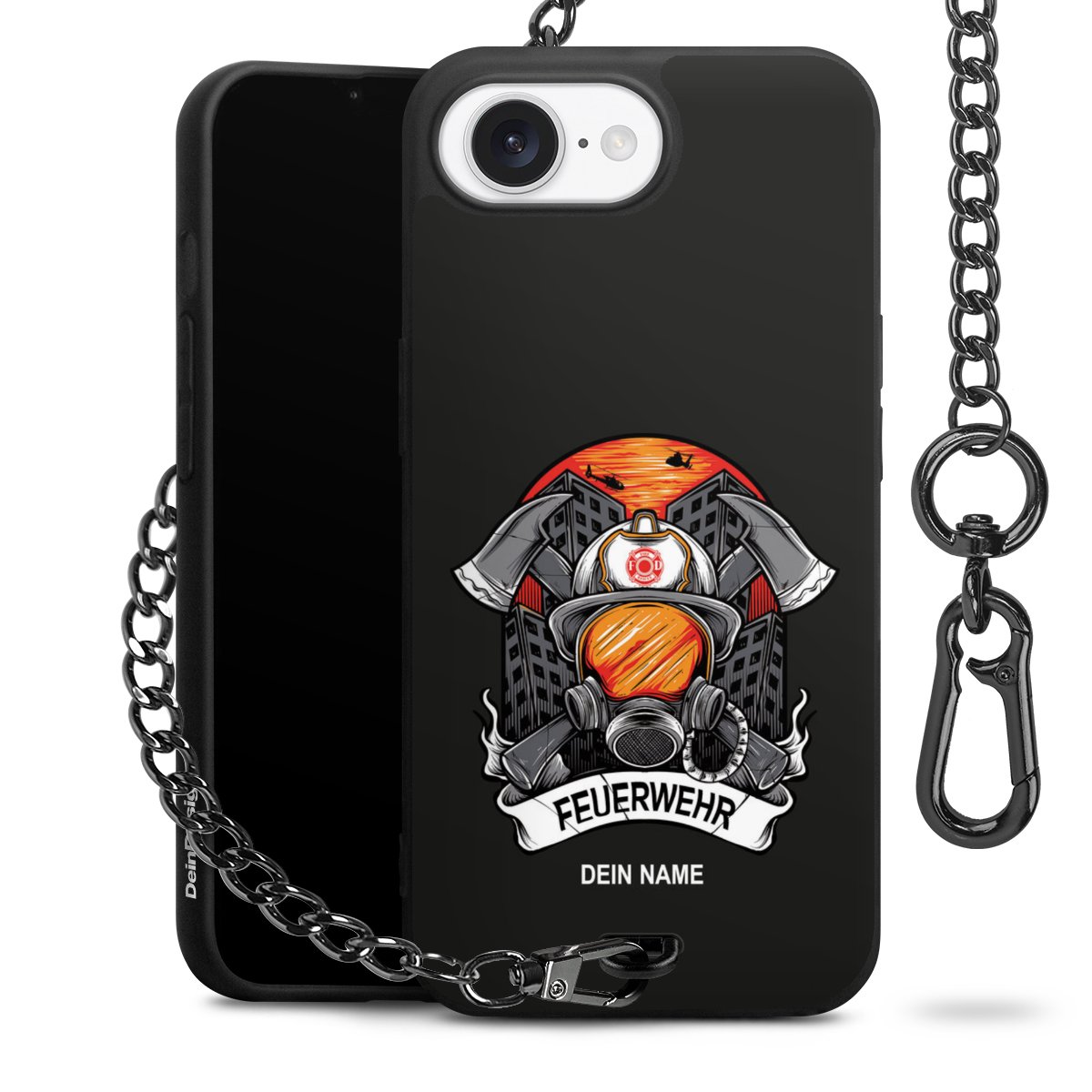 - Mattschwarze Handyhülle mit Metallkette