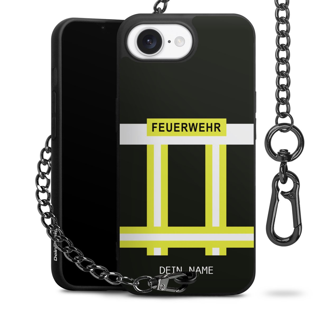 - Mattschwarze Handyhülle mit Metallkette