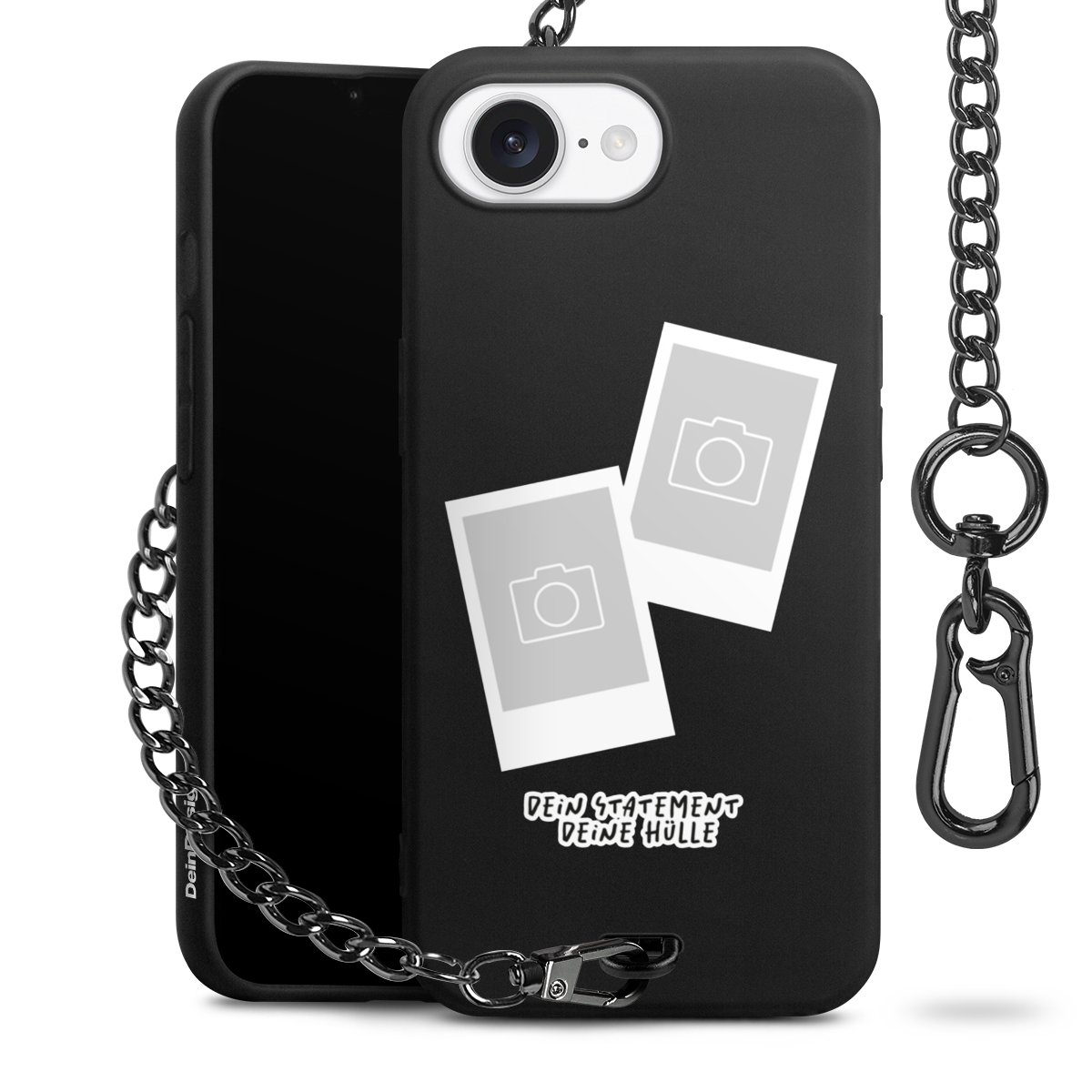 - Mattschwarze Handyhülle mit Metallkette