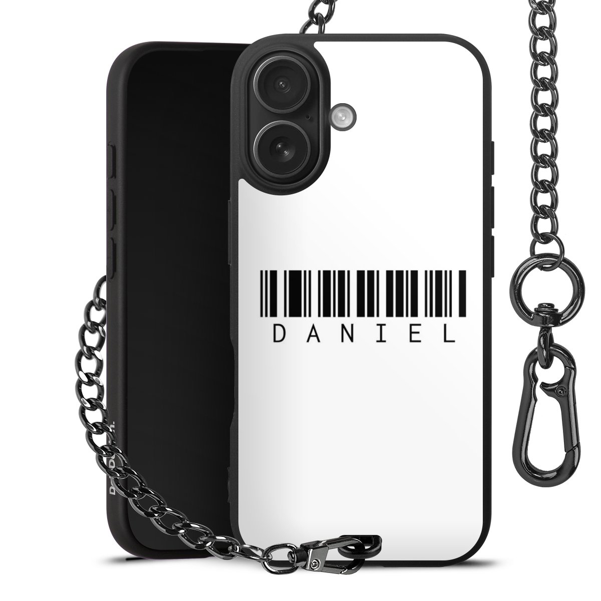 - Mattschwarze Handyhülle mit Metallkette