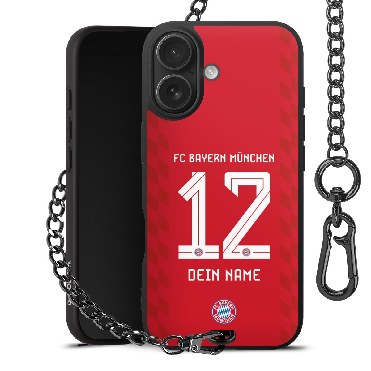 - Mattschwarze Handyhülle mit Metallkette