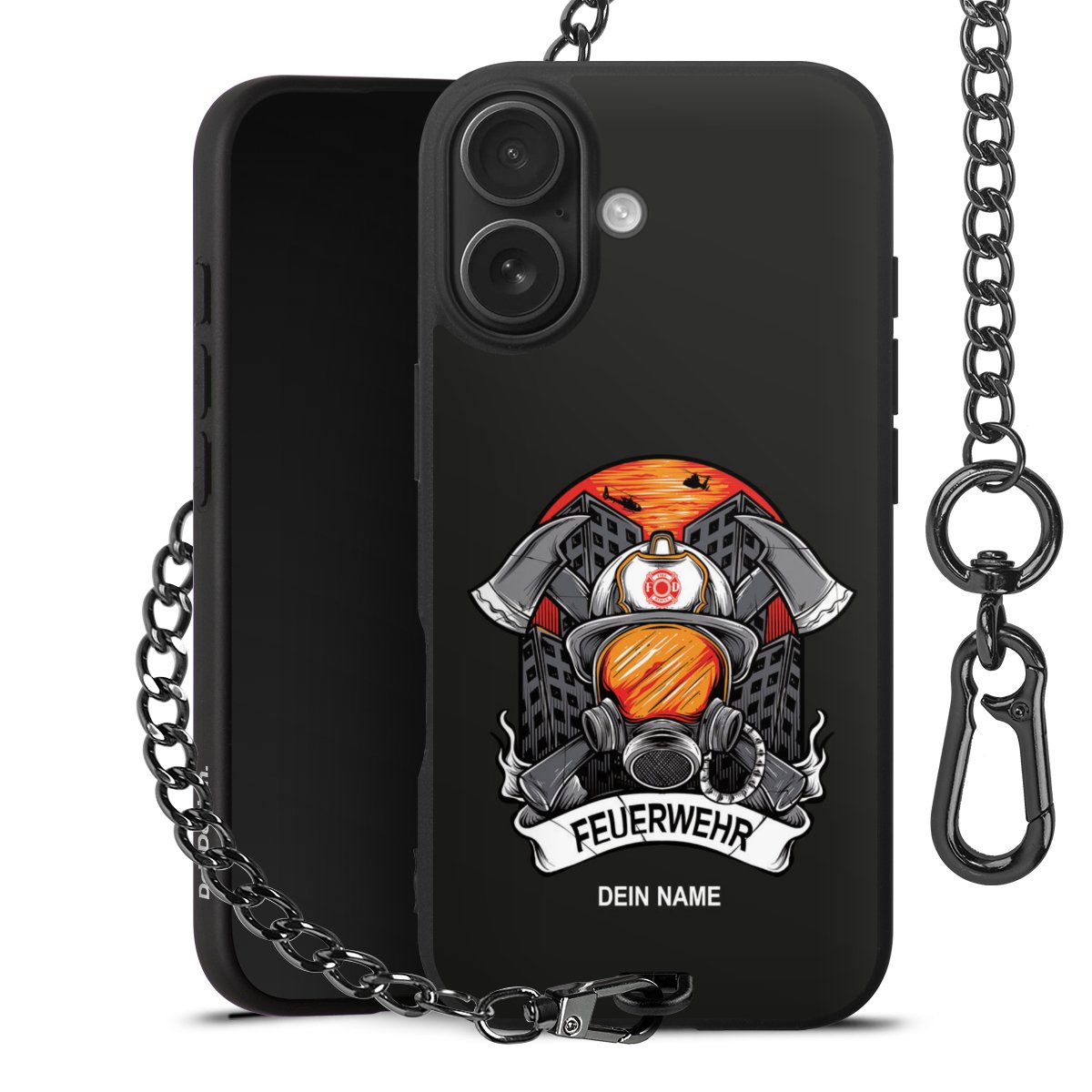 - Mattschwarze Handyhülle mit Metallkette