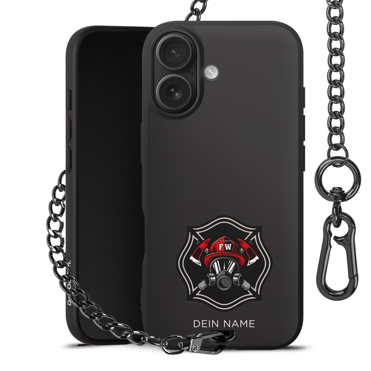 - Mattschwarze Handyhülle mit Metallkette