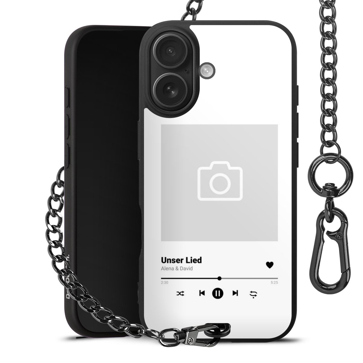 Die mattschwarze Silikon-Handyhülle besteht aus robustem TPU (thermoplastisches Polyurethan). Sie ist flexibel und schützt Dein Smartphone vor Stößen und Kratzern. Die Kette sowie der Karabinerhaken sind aus Metall in Gunmetal-Optik gefertigt. Für dieses Produkt kommen ausschließlich TÜV-geprüfte Materialien zum Einsatz.