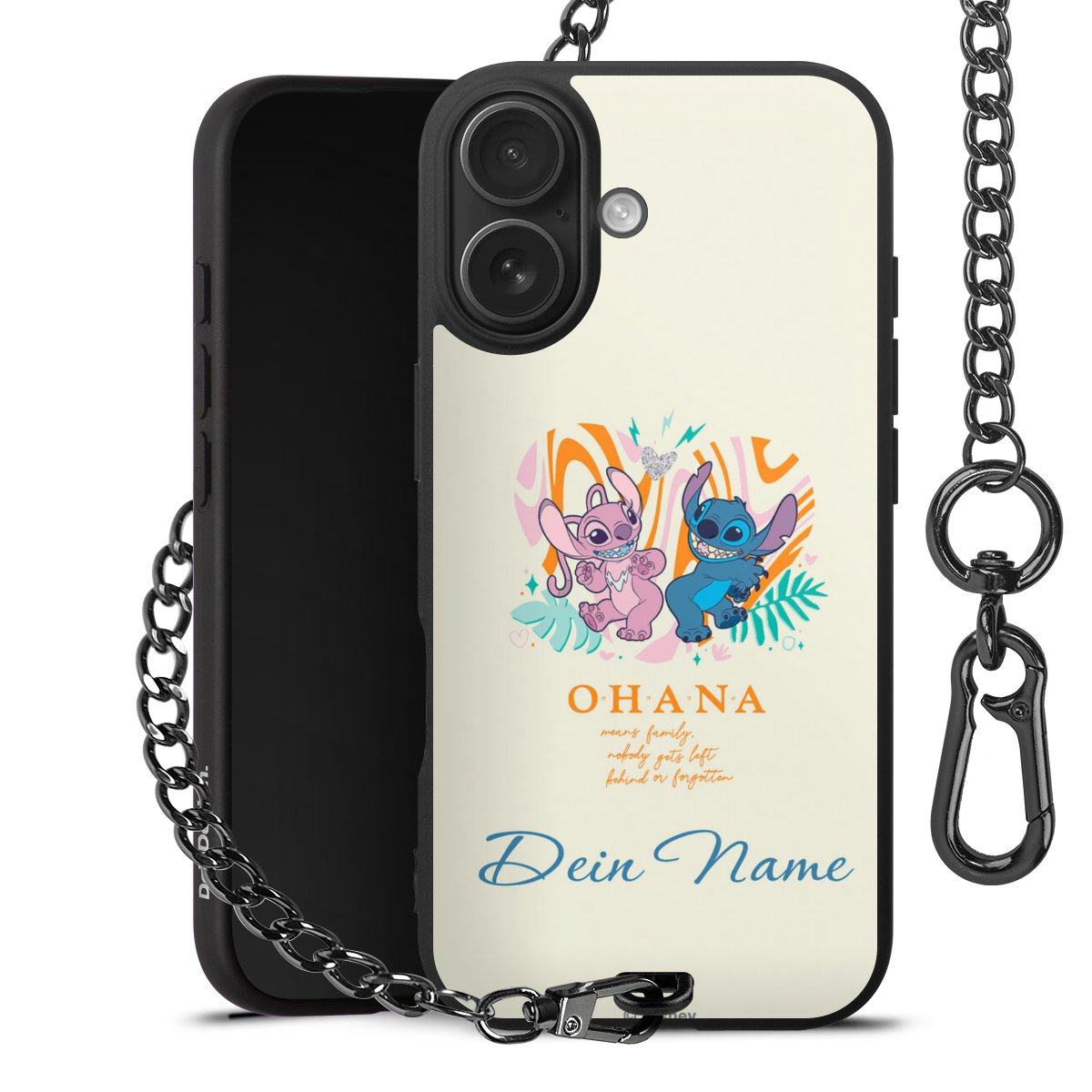 - Mattschwarze Handyhülle mit Metallkette