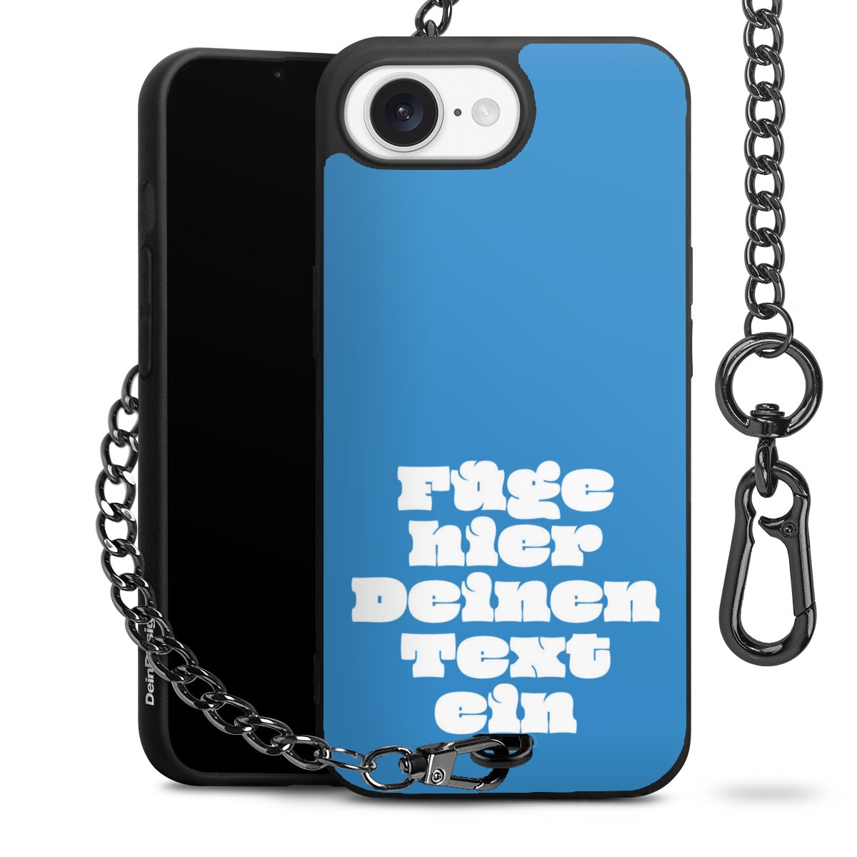 - Mattschwarze Handyhülle mit Metallkette