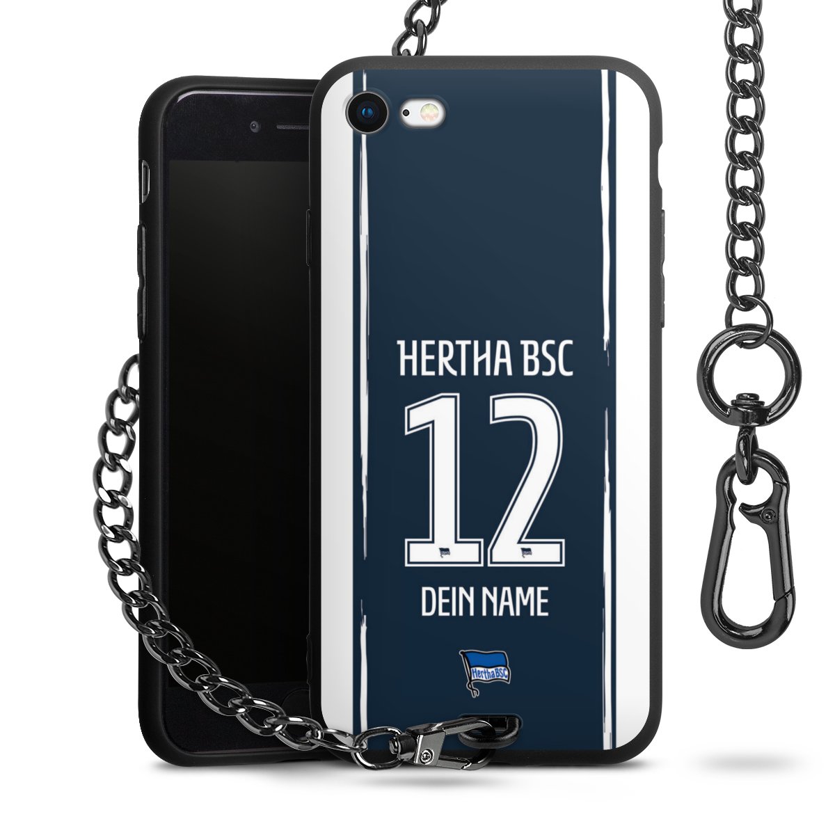 Die mattschwarze Silikon-Handyhülle besteht aus robustem TPU (thermoplastisches Polyurethan). Sie ist flexibel und schützt Dein Smartphone vor Stößen und Kratzern. Die Kette sowie der Karabinerhaken sind aus Metall in Gunmetal-Optik gefertigt. Für dieses Produkt kommen ausschließlich TÜV-geprüfte Materialien zum Einsatz.