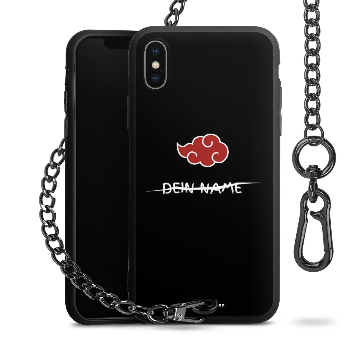 - Mattschwarze Handyhülle mit Metallkette