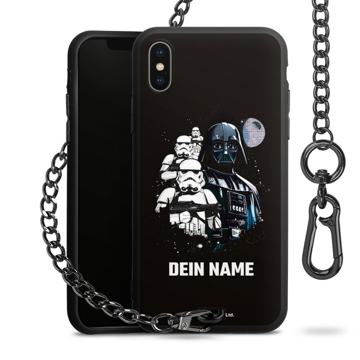 - Mattschwarze Handyhülle mit Metallkette