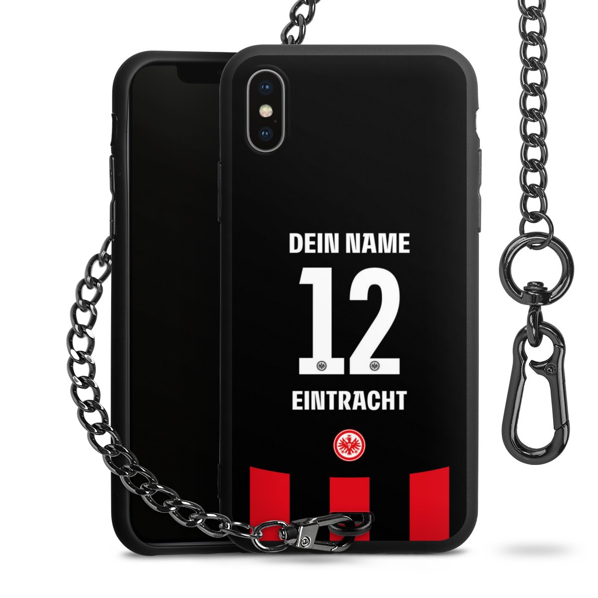 - Mattschwarze Handyhülle mit Metallkette