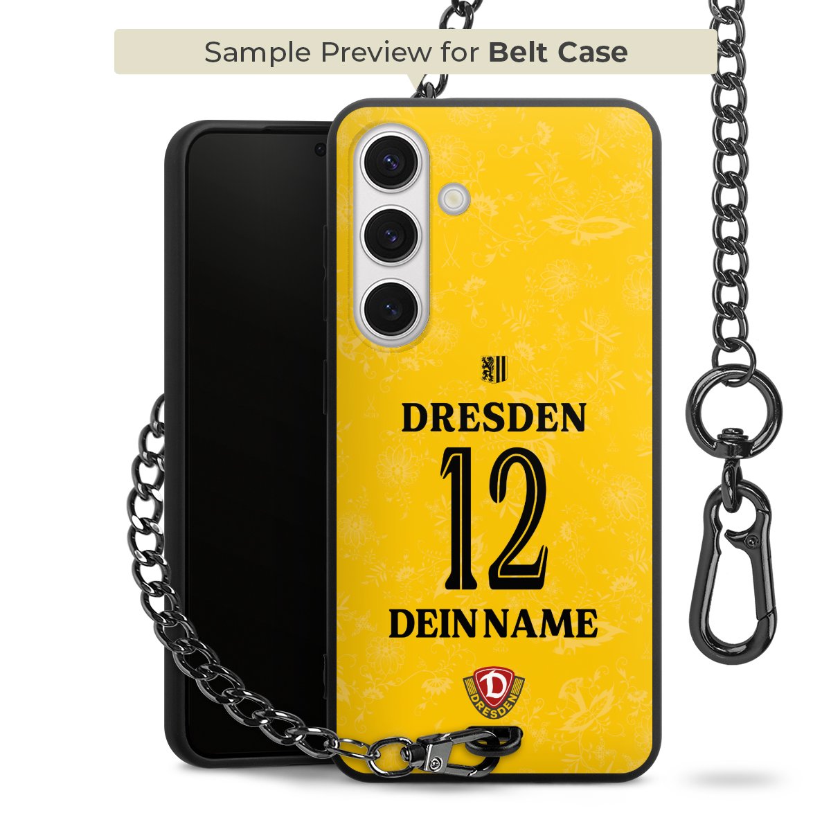 Ob im Alltag, beim Feiern mit Deinen Jungs oder auf Festivals – mit dem superpraktischen Belt Case steckst Du alle Sorgen um Diebstahl und Spider-App ganz entspannt in die Tasche. Es besteht aus einem coolen mattschwarzen Silikon Premium Case, dem Du ein individuelles Design verpassen kannst, und einer daran befestigten Kette in lässiger Gunmetal-Optik. Mit dem Karabiner auf der anderen Seite klickst Du die Kette mit einem Handgriff an Deine Gürtelschlaufe und schon ist Dein Smartphone sicher und stets griffbereit in der Hosentasche verstaut.