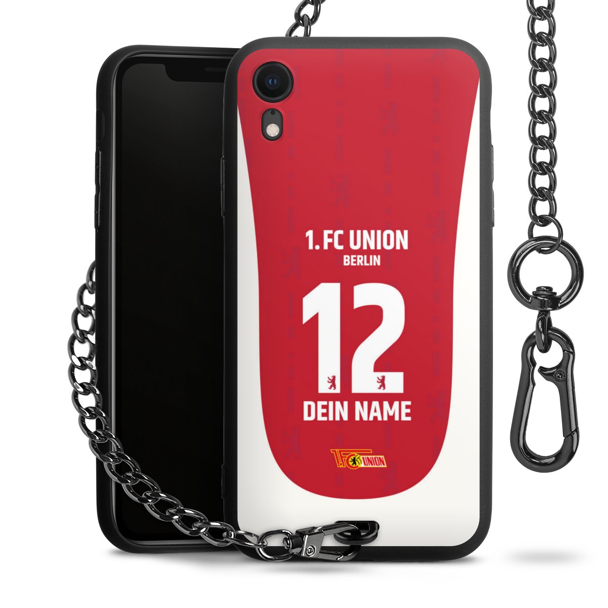 Die Handyhülle verfügt über eine mittig am unteren Rand platzierte Öse, an der die Metallkette stabil befestigt ist. Bestelle die Hülle einfach für Dein Smartphone-Modell, dann passt sie wie angegossen und Du brauchst sie bloß einmal anzudrücken. Handy in die Tasche, Karabiner an den Hosenbund – schon kann die Party starten.