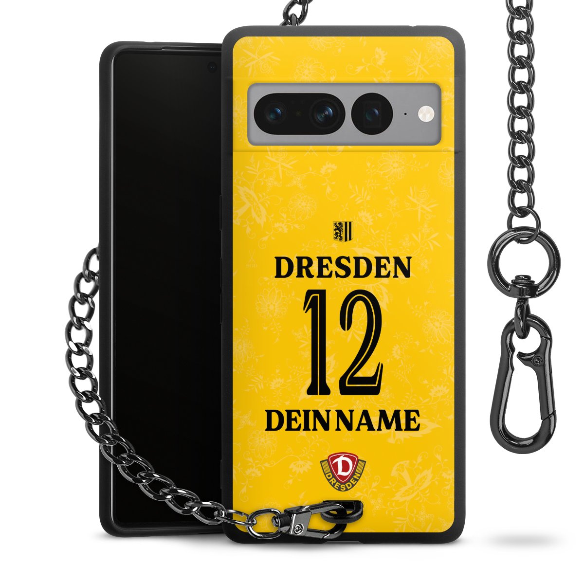 Die mattschwarze Silikon-Handyhülle besteht aus robustem TPU (thermoplastisches Polyurethan). Sie ist flexibel und schützt Dein Smartphone vor Stößen und Kratzern. Die Kette sowie der Karabinerhaken sind aus Metall in Gunmetal-Optik gefertigt. Für dieses Produkt kommen ausschließlich TÜV-geprüfte Materialien zum Einsatz.