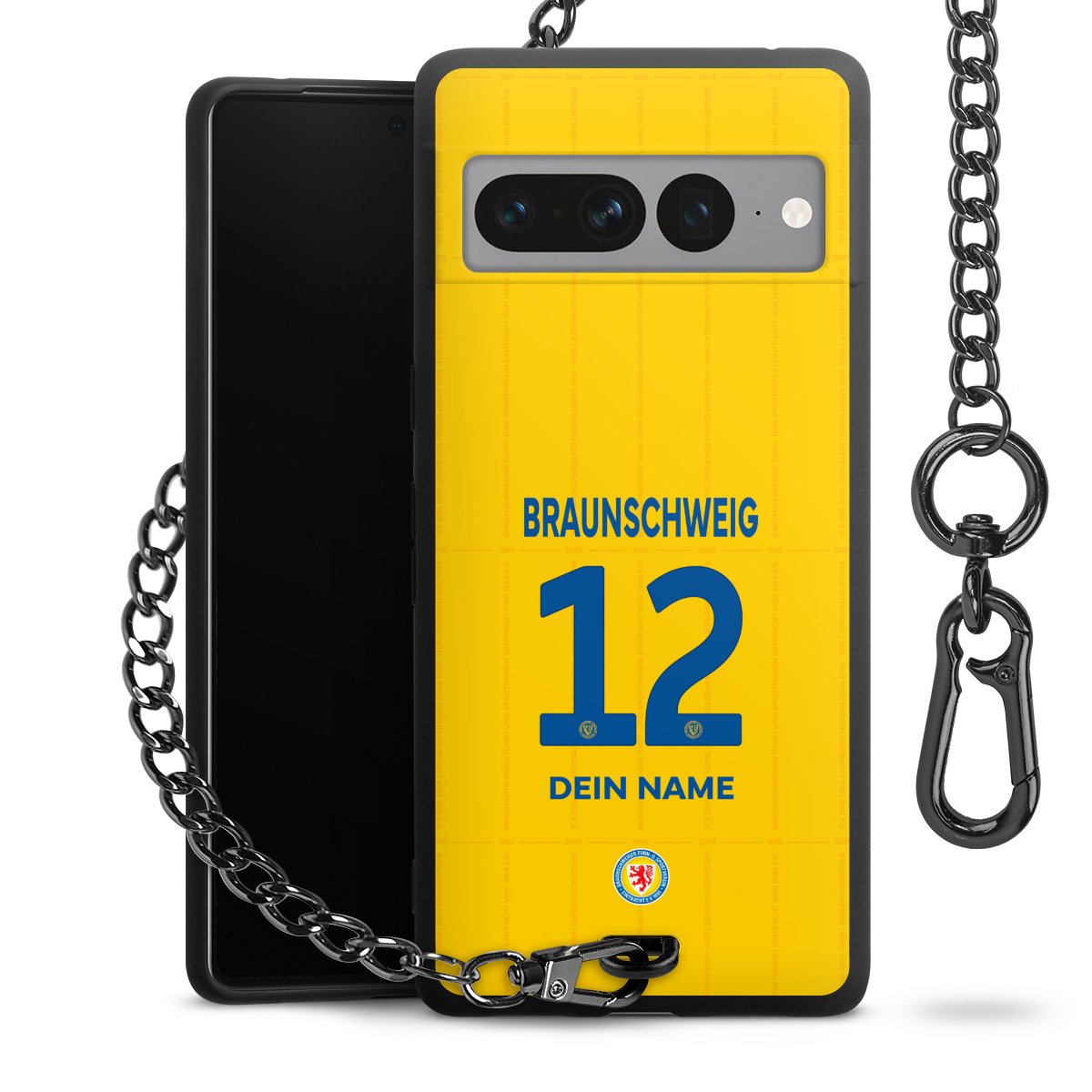 Die mattschwarze Silikon-Handyhülle besteht aus robustem TPU (thermoplastisches Polyurethan). Sie ist flexibel und schützt Dein Smartphone vor Stößen und Kratzern. Die Kette sowie der Karabinerhaken sind aus Metall in Gunmetal-Optik gefertigt. Für dieses Produkt kommen ausschließlich TÜV-geprüfte Materialien zum Einsatz.