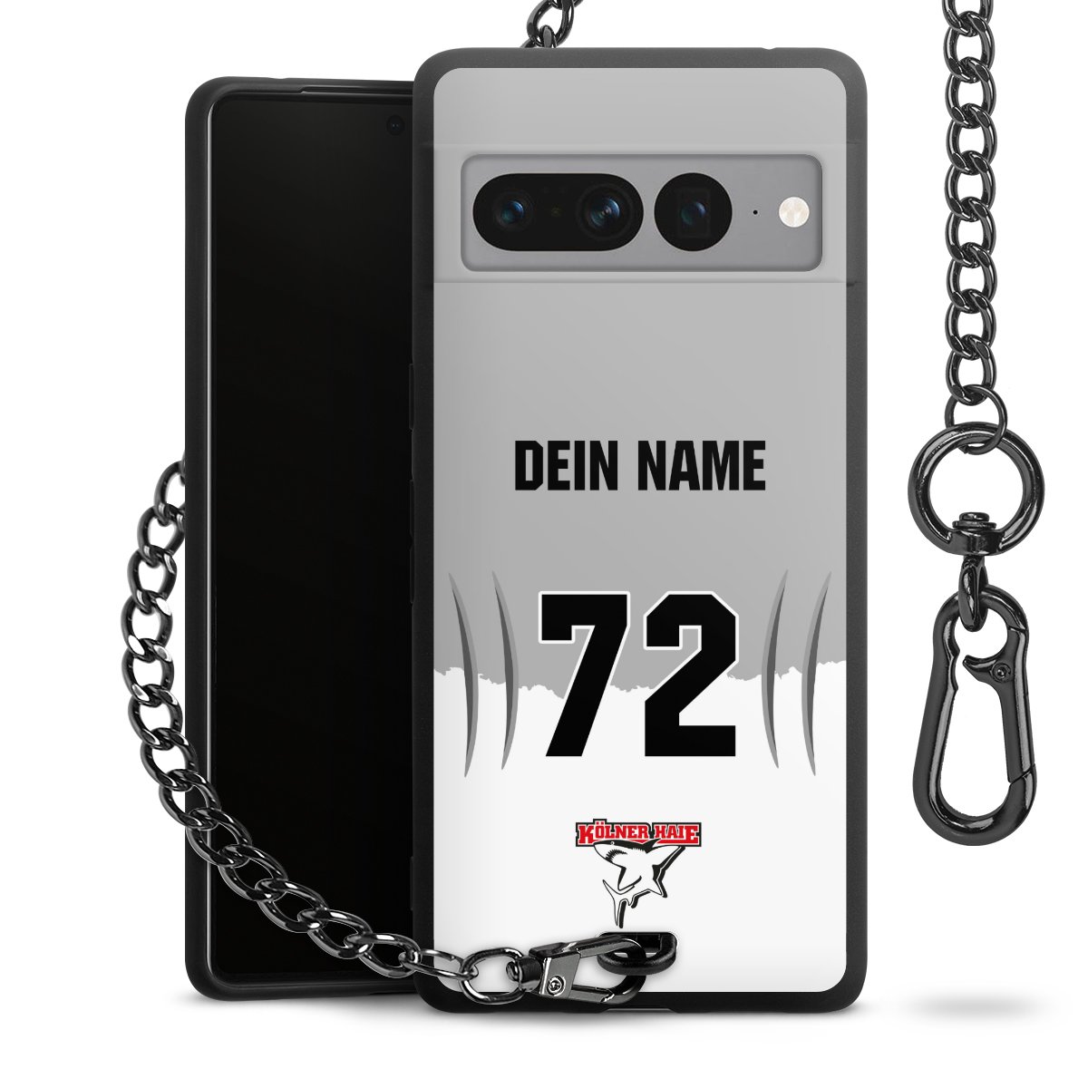 Die mattschwarze Silikon-Handyhülle besteht aus robustem TPU (thermoplastisches Polyurethan). Sie ist flexibel und schützt Dein Smartphone vor Stößen und Kratzern. Die Kette sowie der Karabinerhaken sind aus Metall in Gunmetal-Optik gefertigt. Für dieses Produkt kommen ausschließlich TÜV-geprüfte Materialien zum Einsatz.