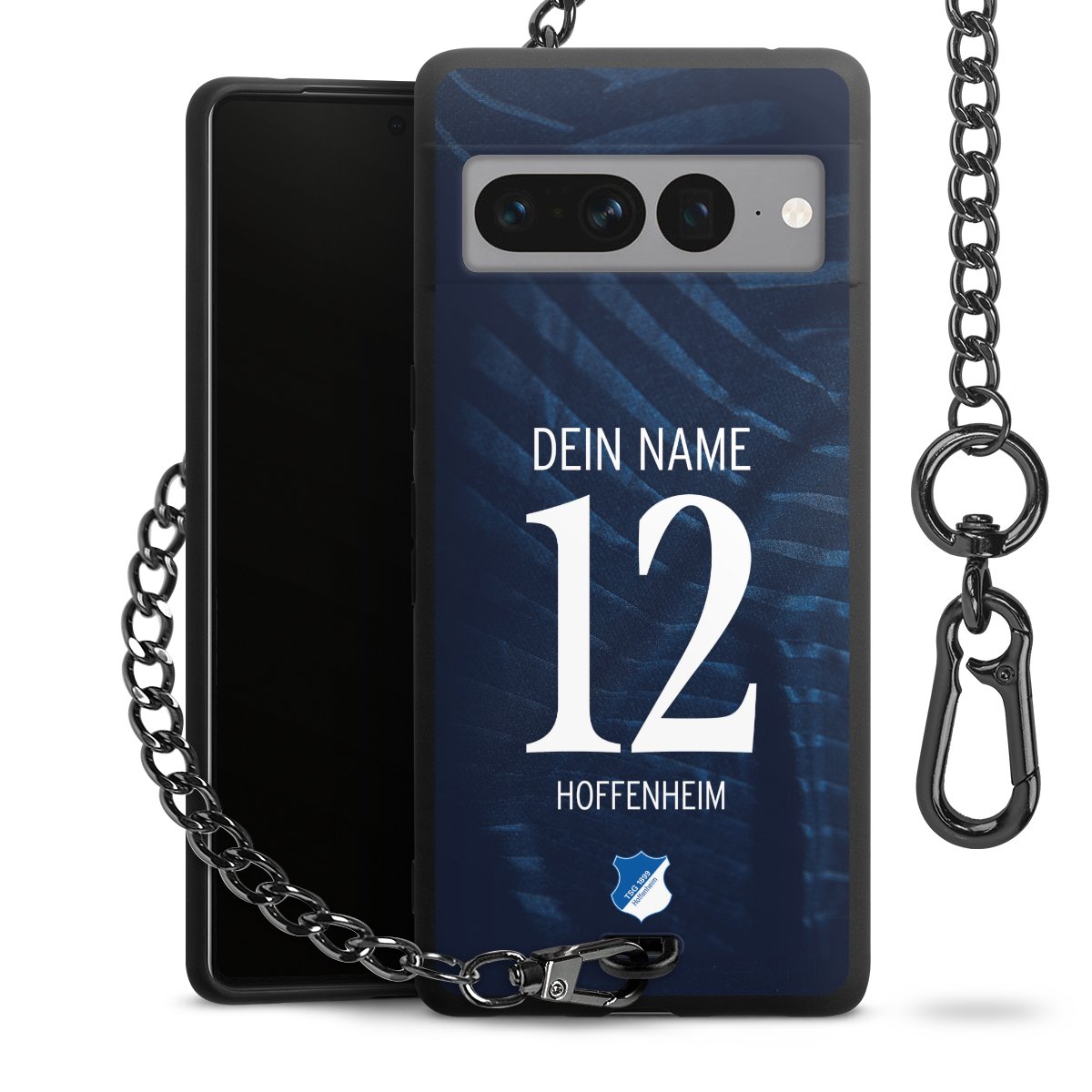 Die mattschwarze Silikon-Handyhülle besteht aus robustem TPU (thermoplastisches Polyurethan). Sie ist flexibel und schützt Dein Smartphone vor Stößen und Kratzern. Die Kette sowie der Karabinerhaken sind aus Metall in Gunmetal-Optik gefertigt. Für dieses Produkt kommen ausschließlich TÜV-geprüfte Materialien zum Einsatz.