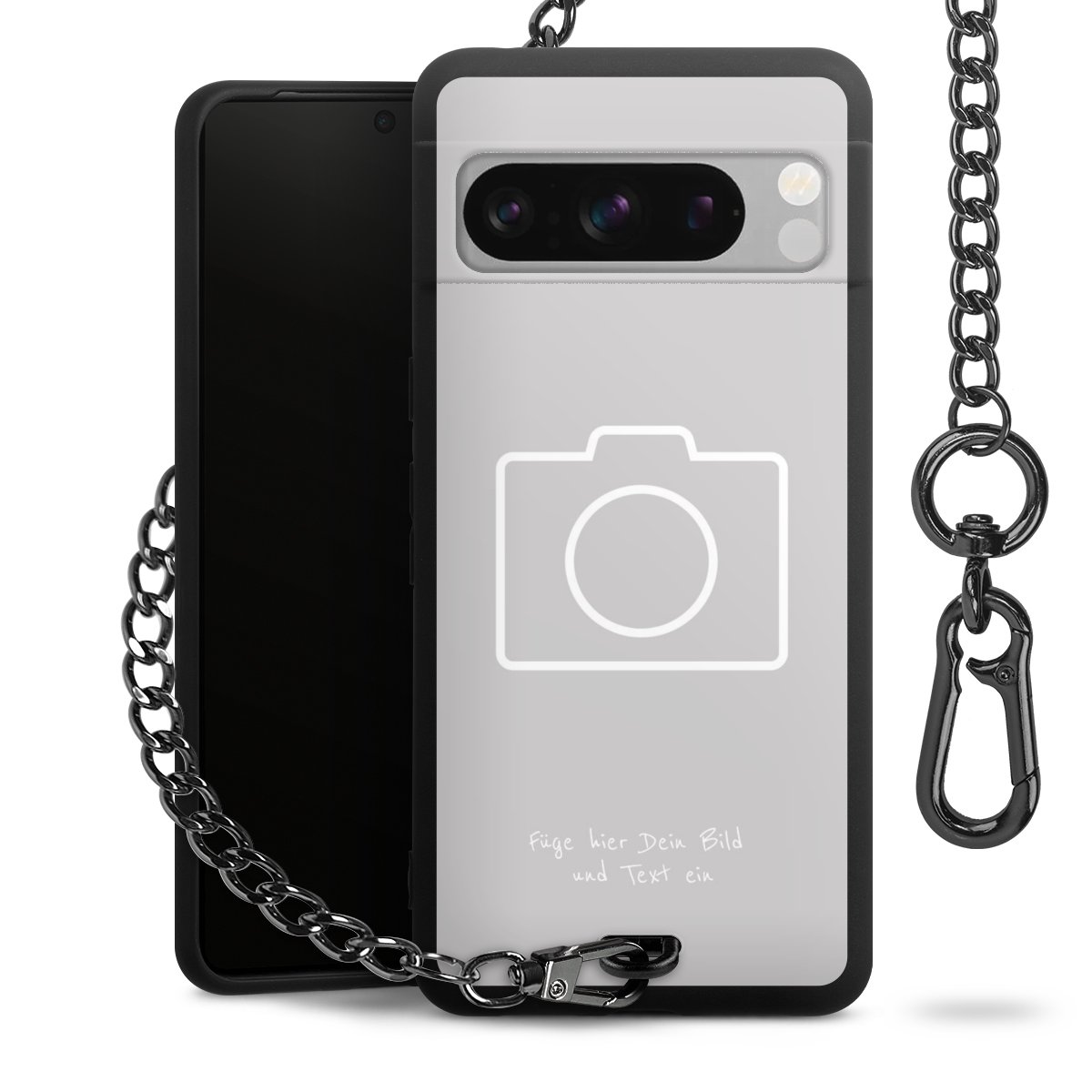 - Mattschwarze Handyhülle mit Metallkette
