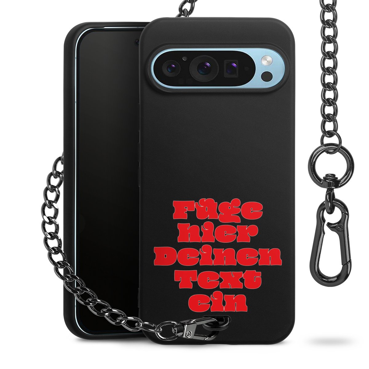 - Mattschwarze Handyhülle mit Metallkette