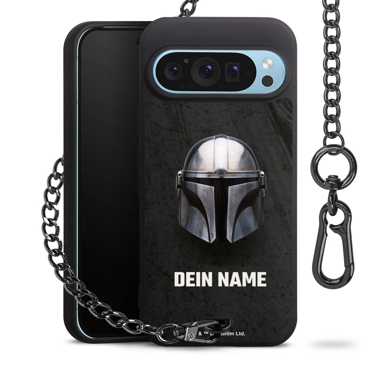 Die mattschwarze Silikon-Handyhülle besteht aus robustem TPU (thermoplastisches Polyurethan). Sie ist flexibel und schützt Dein Smartphone vor Stößen und Kratzern. Die Kette sowie der Karabinerhaken sind aus Metall in Gunmetal-Optik gefertigt. Für dieses Produkt kommen ausschließlich TÜV-geprüfte Materialien zum Einsatz.