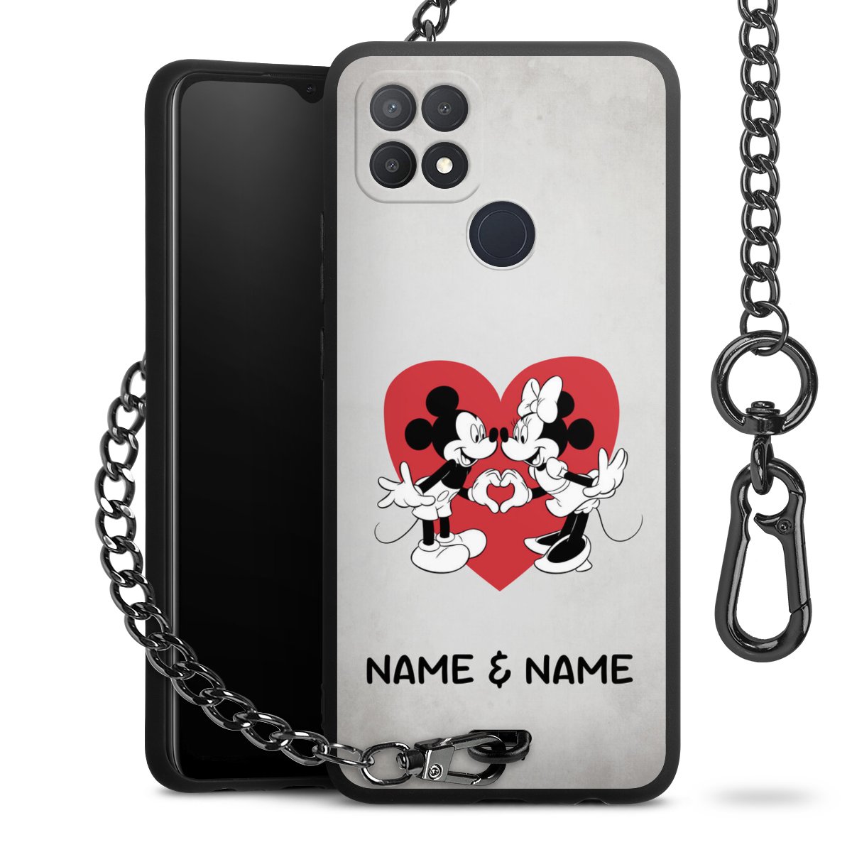 - Mattschwarze Handyhülle mit Metallkette