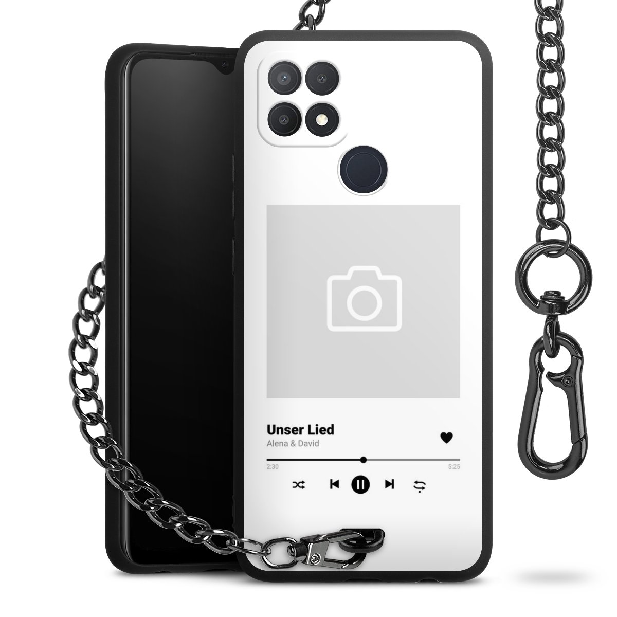 Die mattschwarze Silikon-Handyhülle besteht aus robustem TPU (thermoplastisches Polyurethan). Sie ist flexibel und schützt Dein Smartphone vor Stößen und Kratzern. Die Kette sowie der Karabinerhaken sind aus Metall in Gunmetal-Optik gefertigt. Für dieses Produkt kommen ausschließlich TÜV-geprüfte Materialien zum Einsatz.