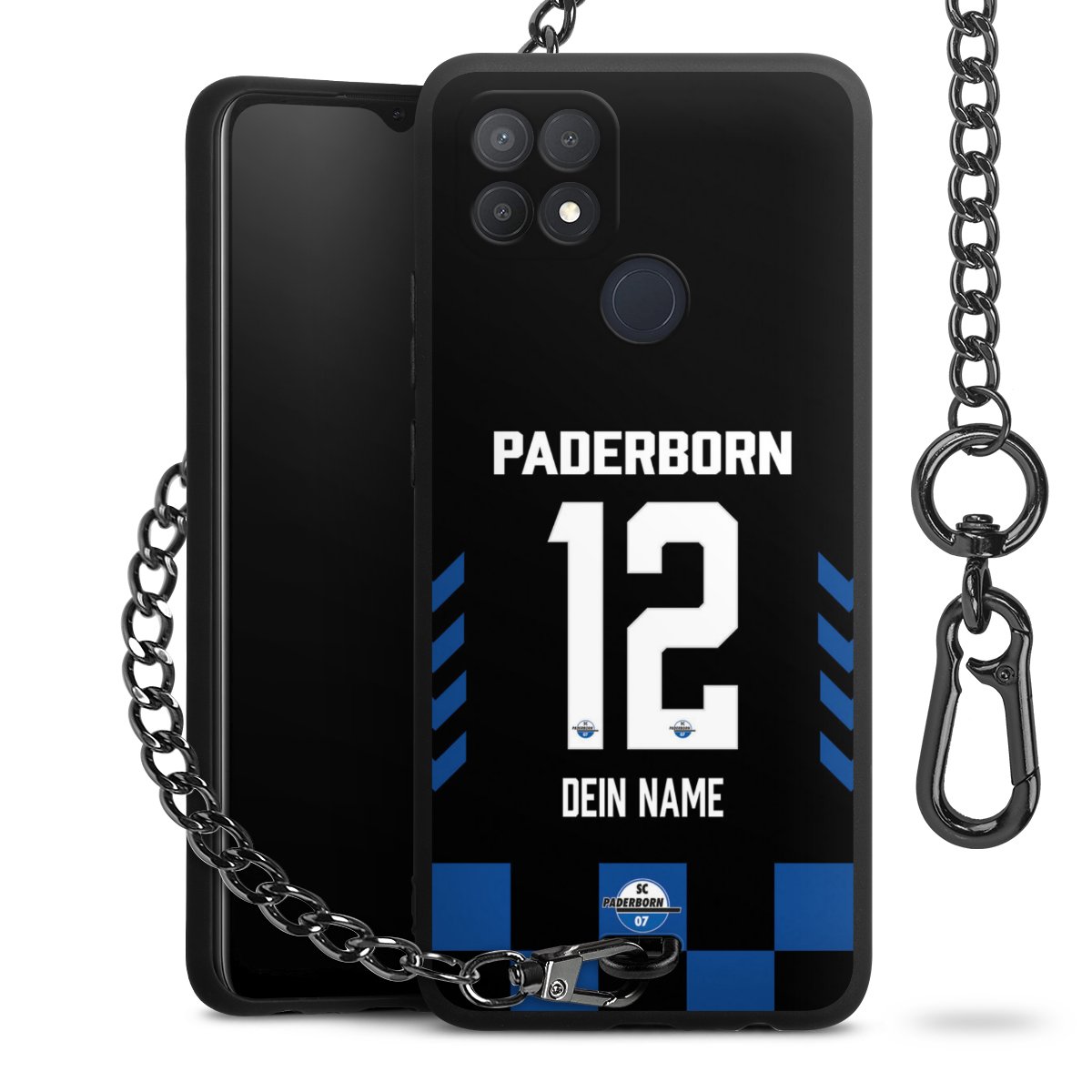 - Mattschwarze Handyhülle mit Metallkette