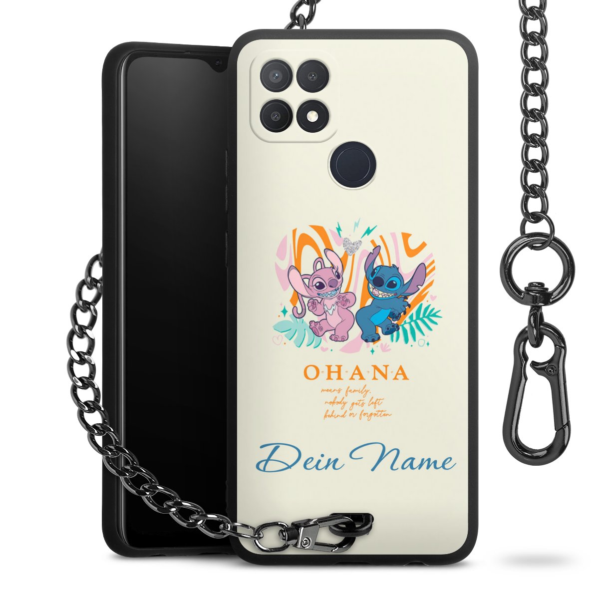 Die Handyhülle verfügt über eine mittig am unteren Rand platzierte Öse, an der die Metallkette stabil befestigt ist. Bestelle die Hülle einfach für Dein Smartphone-Modell, dann passt sie wie angegossen und Du brauchst sie bloß einmal anzudrücken. Handy in die Tasche, Karabiner an den Hosenbund – schon kann die Party starten.