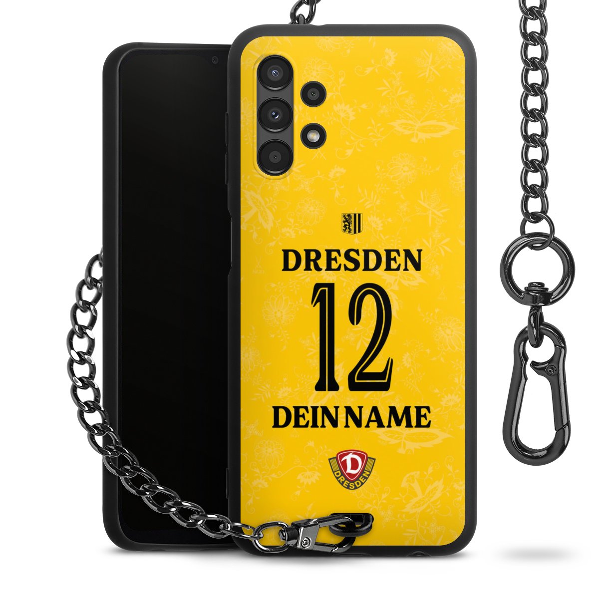Die mattschwarze Silikon-Handyhülle besteht aus robustem TPU (thermoplastisches Polyurethan). Sie ist flexibel und schützt Dein Smartphone vor Stößen und Kratzern. Die Kette sowie der Karabinerhaken sind aus Metall in Gunmetal-Optik gefertigt. Für dieses Produkt kommen ausschließlich TÜV-geprüfte Materialien zum Einsatz.