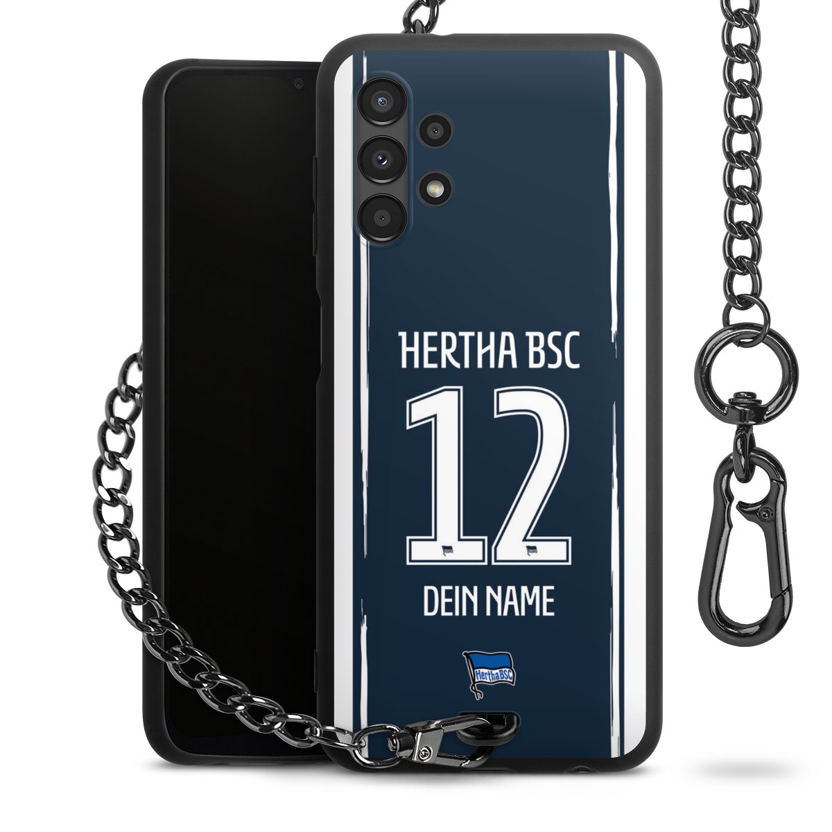 - Mattschwarze Handyhülle mit Metallkette