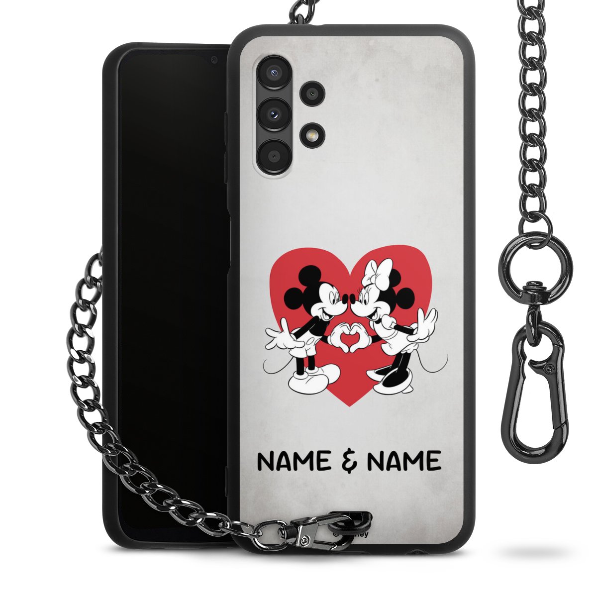 - Mattschwarze Handyhülle mit Metallkette