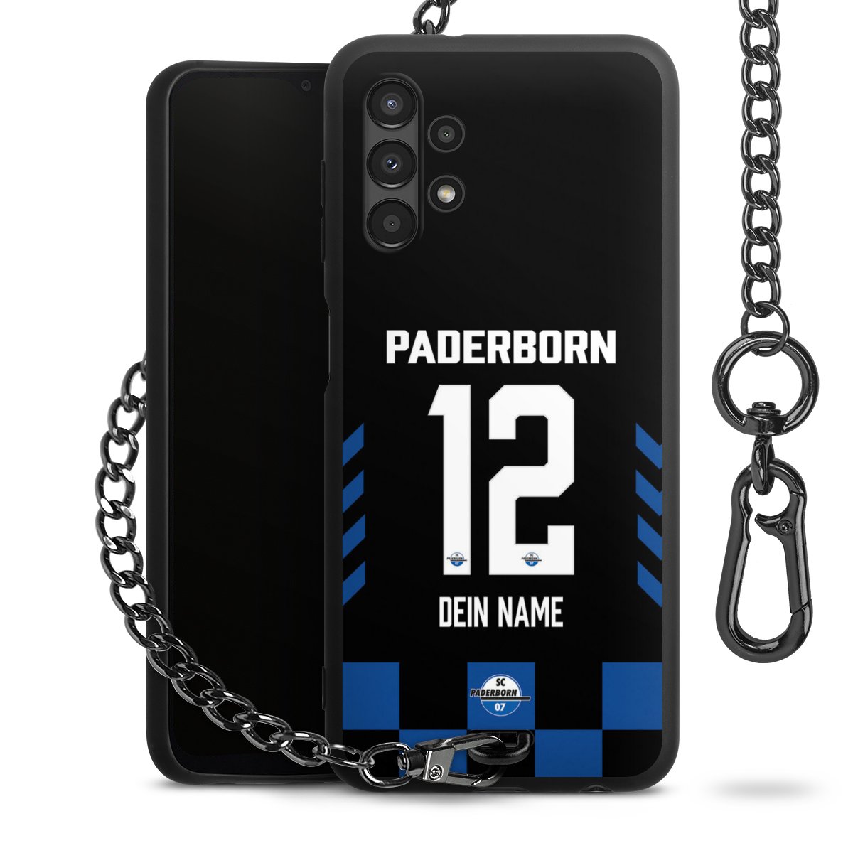 - Mattschwarze Handyhülle mit Metallkette