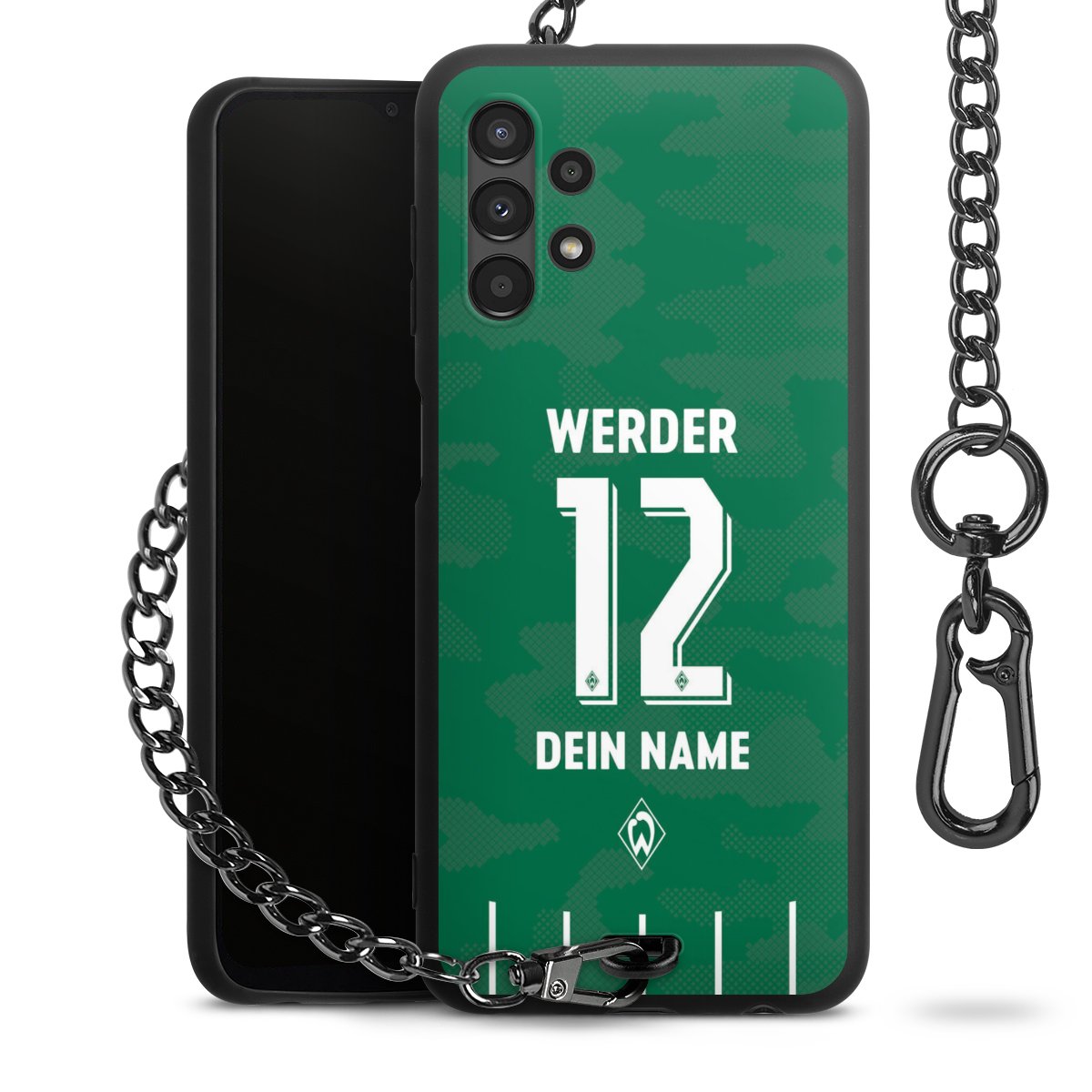 - Mattschwarze Handyhülle mit Metallkette