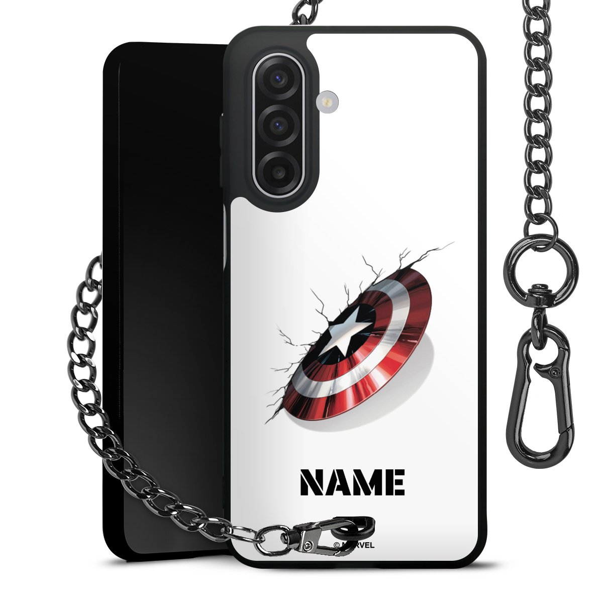 - Mattschwarze Handyhülle mit Metallkette
