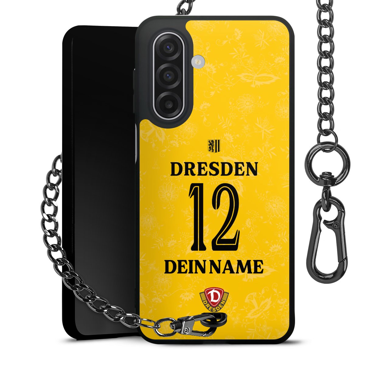 - Mattschwarze Handyhülle mit Metallkette