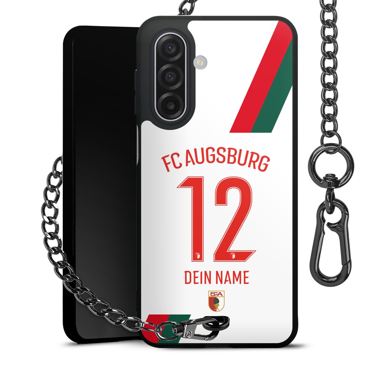 - Mattschwarze Handyhülle mit Metallkette