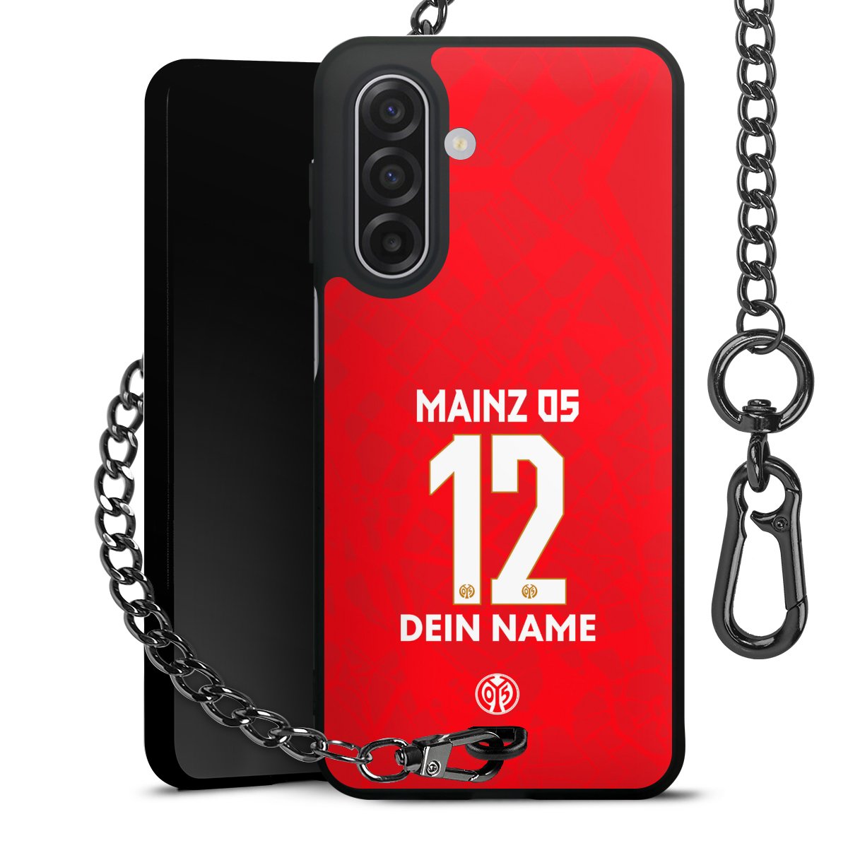 - Mattschwarze Handyhülle mit Metallkette