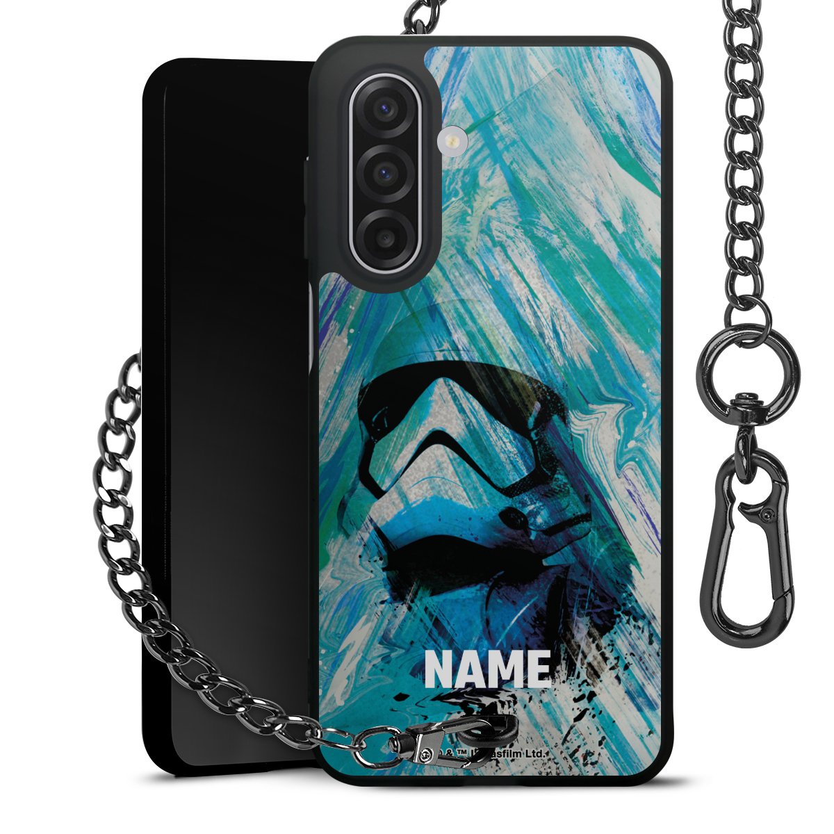 - Mattschwarze Handyhülle mit Metallkette